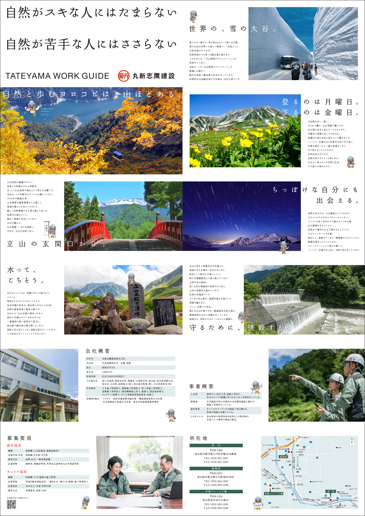富山県にある建設会社・丸新志鷹建設株式会社さまの採用案内パンフレットです。